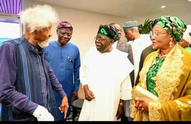 Prof. Wole Soyinka; Lagos State Governor, Mr. Babajide Sanwo-Olu; President Bola Ahmed Tinubu and First Lady, Sen. Oluremi Tinubu, during the Commissioning and Re-dedication Ceremony of the 4,000 Capacity Wole Soyinka Centre for Culture and the Creative Arts, in Iganmu, Lagos.